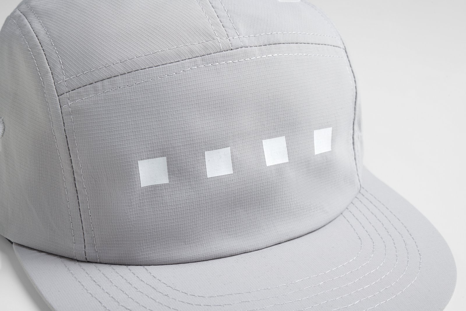 Gorra 100% nailon (Ripstop), vinilo retroluminiscente en su parte frontal,  banda para el sudor: tejido 100% poliéster Coolmax®, tejido impermeable y transpirable , 5 paneles y con cierre ajustable a presión.
